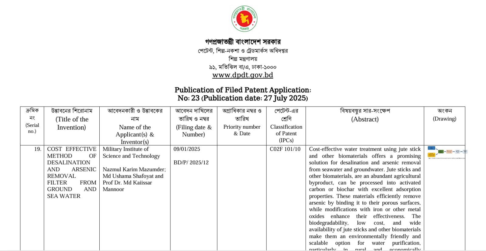 The 1stpatent from the BME Department onCost-effective water treatment using jute stick and other biomaterials offers a promising solution for desalination and arsenic removal from seawater and groundwater. Jute sticks and other biomaterials, are an abundant agricultural byproduct, can be processed... Read More