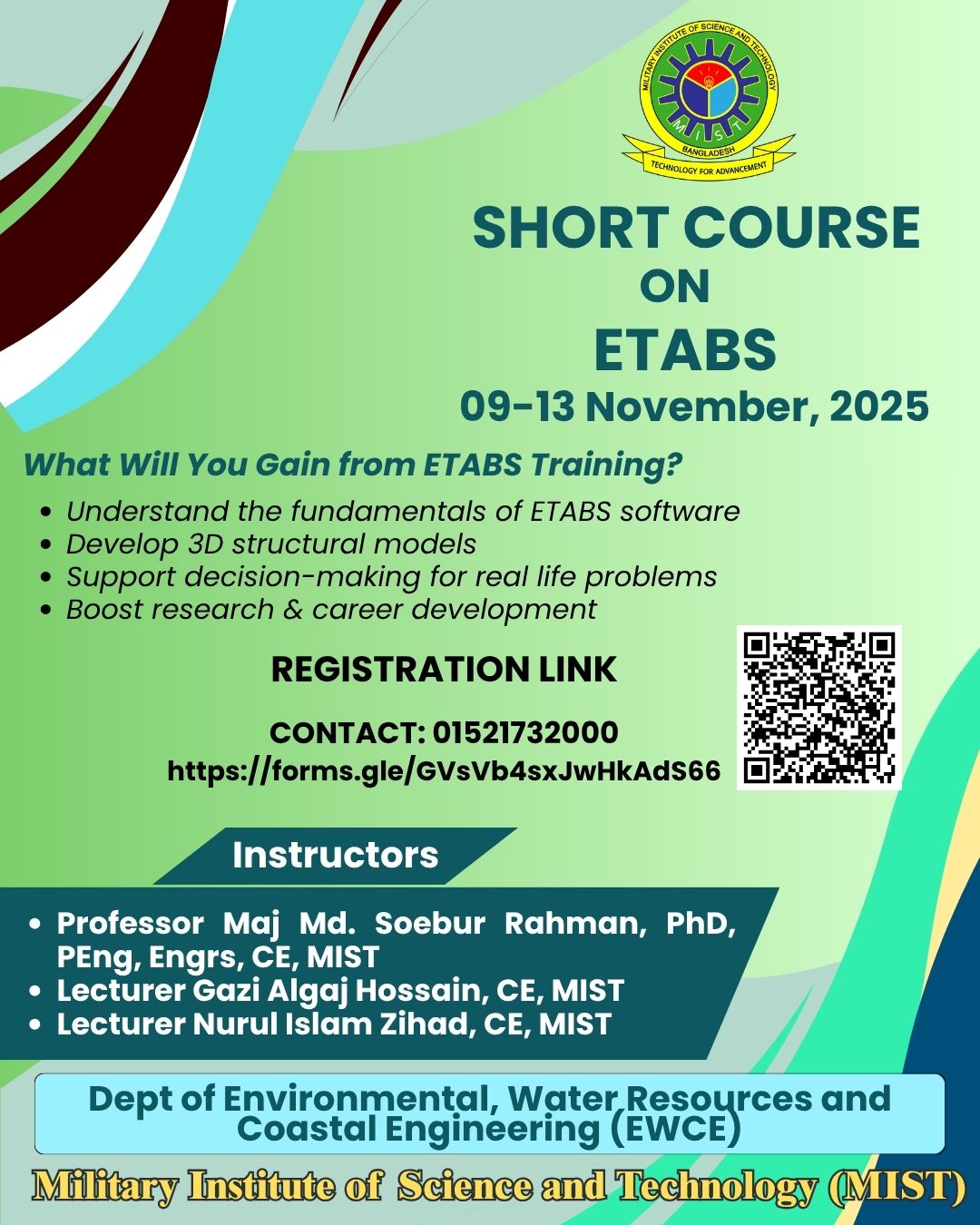 This year, the Department of EWCE, in collaboration with the MIST Environment Club, organized a two-day "MIST ENVIRONMENT FEST 2025" aimed at promoting environmental awareness and sustainable practices under the theme of "Beat Plastic Pollution". The event featured a range of activities, which were held on the 28th of June, including poster presentation, GIS case competition, Buzzer Blitz contest and environmental article writing, all designed to foster a deeper understanding of pressing environmental issues and innovative solutions. This joint effort reflects the department's continued commitment to education, community engagement, and environmental stewardship. On the following day of the event on 29th of June, The Head of the Department extended a warm welcome to everyone from various sectors at MIST Environment Fest 2025. Lt Gen S M Kamrul Hassan, Principal Staff Officer of the Armed Forces Division, attended as the chief guest and expressed the urgency of environmental protection and tackling plastic pollution. A key highlight of the fest was the keynote session, delivered by Dr. Md Mafizur Rahman from BUET, who discussed global efforts to combat plastic pollution. The event also featured technical sessions that addressed some of today’s most critical environmental challenges. Dr. Abdullah Al-Muyeed from the Department of Public Health Engineering (DPHE) shed light on Bangladesh’s sanitation issues, while Nayoka Martinez Bäckström from the Embassy of Sweden emphasized the importance of empowering youth leadership in the face of climate change and environmental uncertainty. In the closing remarks, Maj Gen Md Nasim Parvez, BSP, ndc, afwc, psc, Comdt, MIST, and Chief Patron of the event, highlighted the importance of enhancing public understanding and promoting the adoption of alternatives to plastic to tackle the environmental issues associated with the global climate crisis.