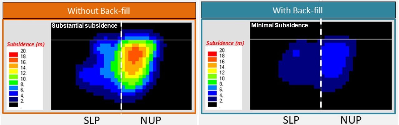 Using the Displacement Discontinuity Method (DDM)—which can account for the ground surface, the closure of mined-out zones, and movement along faults and dykes—we found that backfilling in longwall mining, under certain geo-environmental conditions, noticeably limits surface subsidence. Put simply, backfilling makes the ground sink less and over a smaller area. Alam et al., 2022. Scientific reports, NATURE. https://doi.org/10.1038/s41598-022-19160-1 |