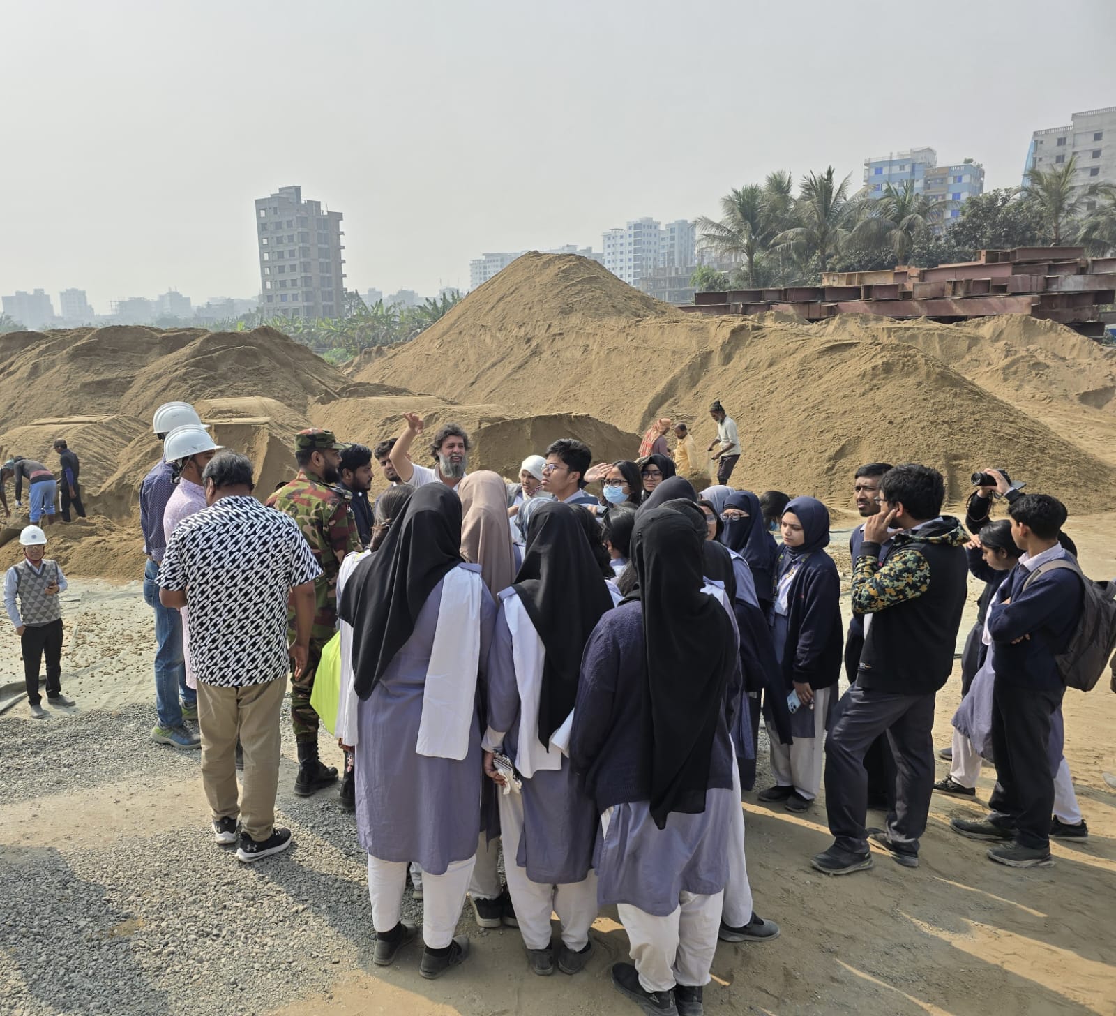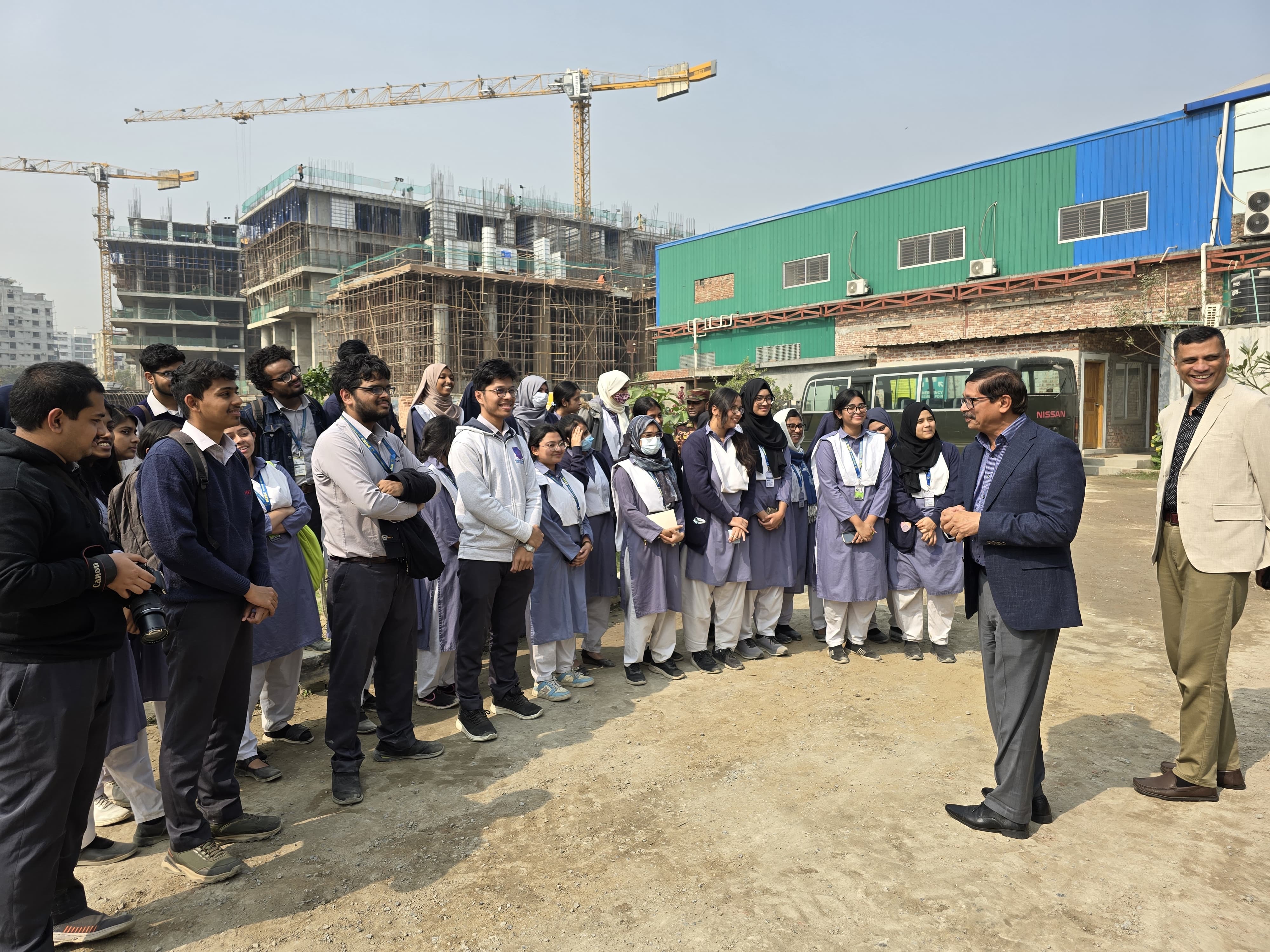 The visit offered valuable practical exposure, enabling students to observe the building’s structural system, material applications, state-of-the-art construction processes, and key architectural design aspects. The session also featured informative interactions and discussions with professionals involved in the project, including Maj Gen Nizam Ahmed (Retd), Executive Director, which significantly enriched the learning experience.