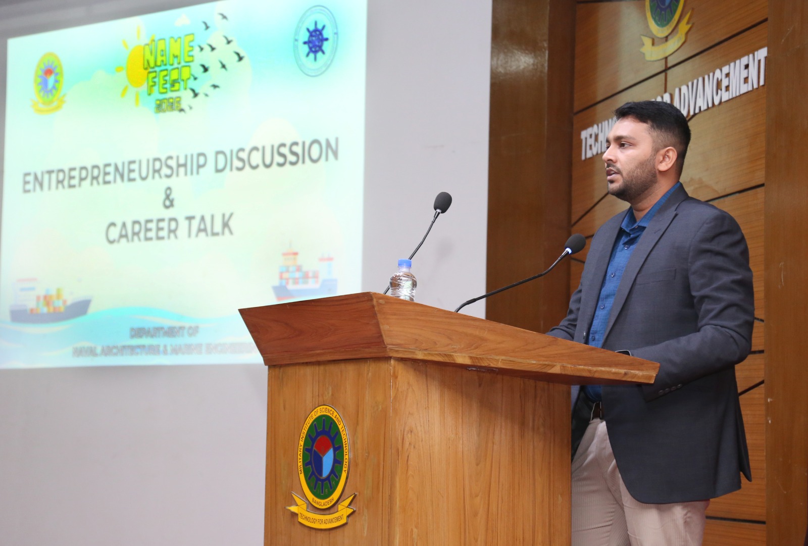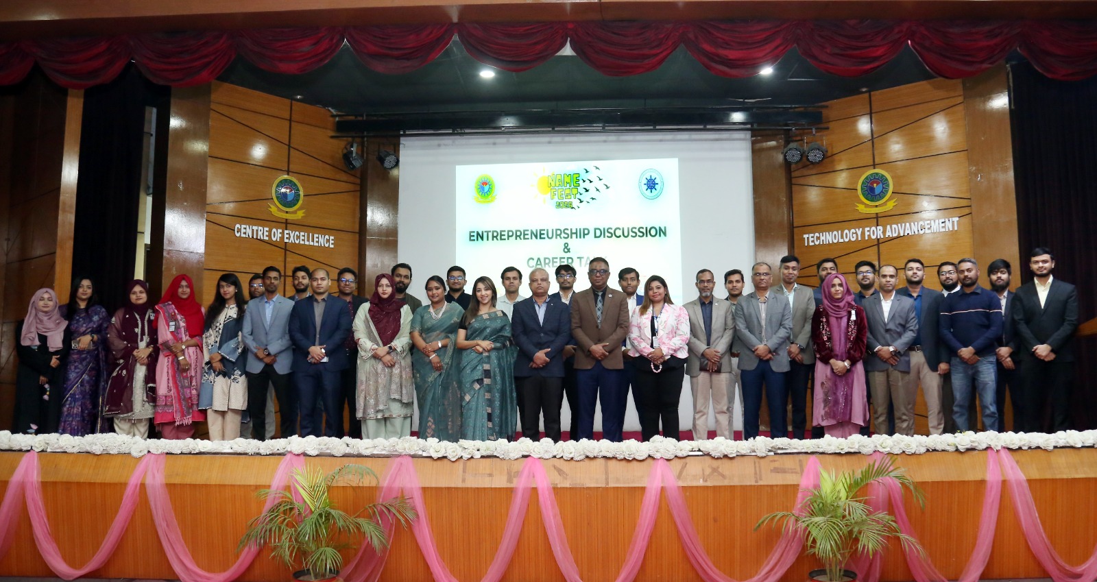 The day commenced with the Entrepreneurship Discussion and Career Talk, where Brigadier General Md. Awal Khan, Dean, Faculty of Mechanical Engineering, graced the occasion as the Chief Guest. A total of five distinguished speakers delivered insightful speeches, sharing their professional experiences and providing valuable guidance to students regarding career development.